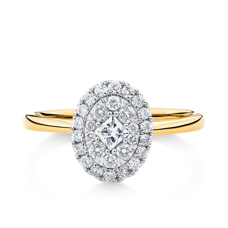 Be the first to review “0.51ct TW Diamond Oval Halo Engagement Ring in 9ct Yellow and White Gold”