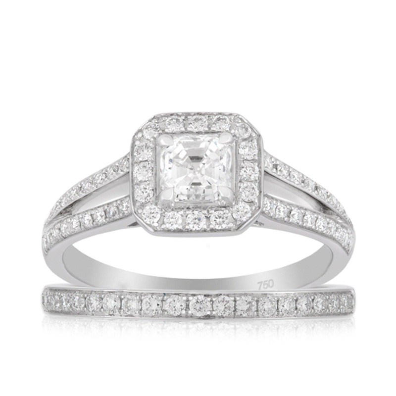 0.96ct TW Asher Cut Diamond Engagement Ring in 18ct White Gold