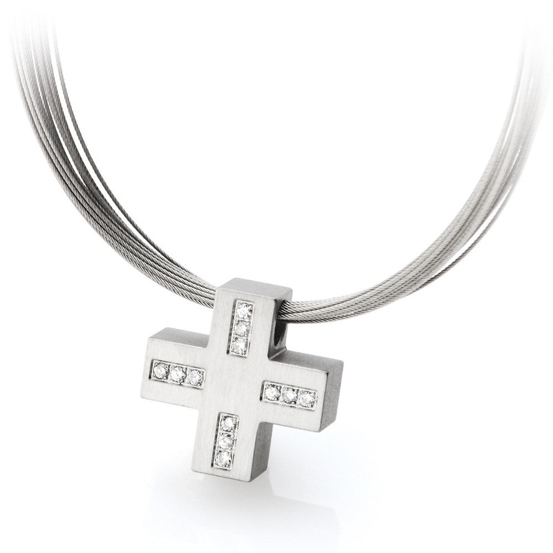 KyRa Cross Pendant, Smooth Finish, with 12 diamonds. Total Weight= 0.096ct.15.5mm in length, 15.5mm across, 3.8mm drillingThis pendant does not come with a chain. Please choose chain separately.