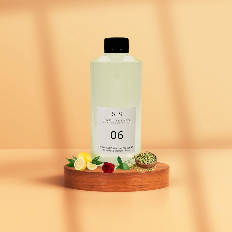 06 is a complex fragrance blend of fresh, spicy, floral, and woody notes. It opens with a bright and citrusy start, followed by a warm and spicy heart, and dries down to a rich, floral, and woody base. A sumptuous fragrance that whisks you away to a realm of opulence and sophistication, like a summer in Provence.