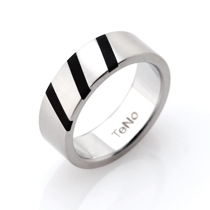 Love Ring, matte finish with 3 diagonal bars of ceramic inlay.