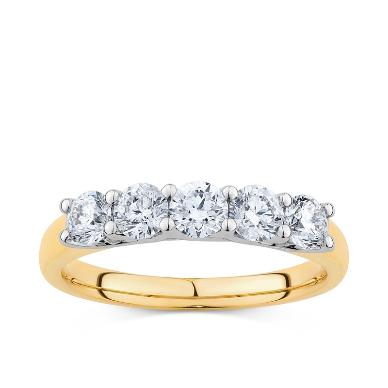 1ct TW Diamond 5 Stone Engagement Ring in 18ct Yellow and White Gold