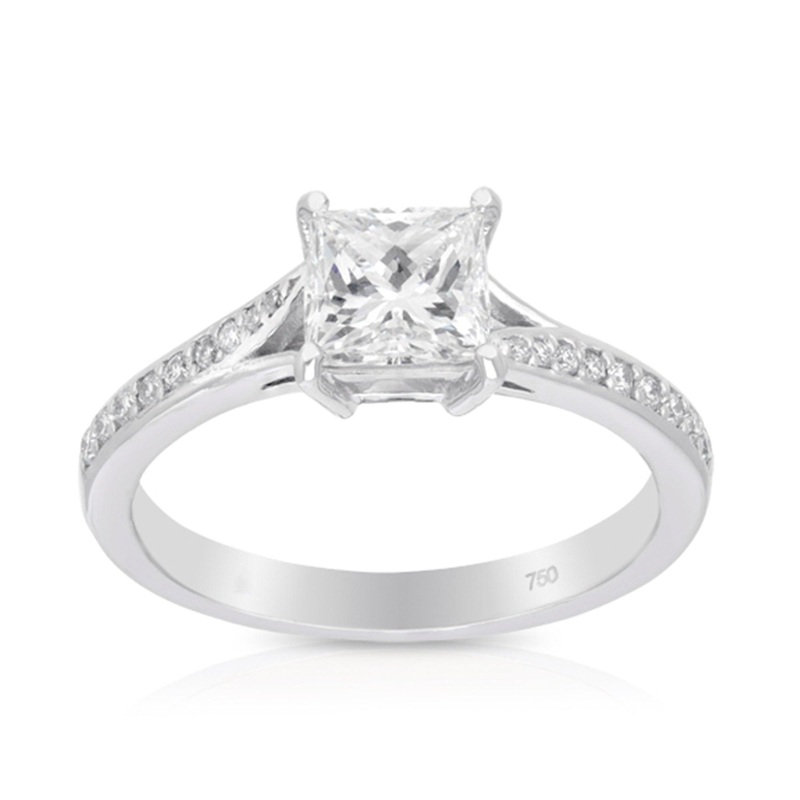 This 18ct White Gold ring showcasing a captivating 1.06 carat Princess Cut Diamond is a classic yet stylish way to flaunt your love.