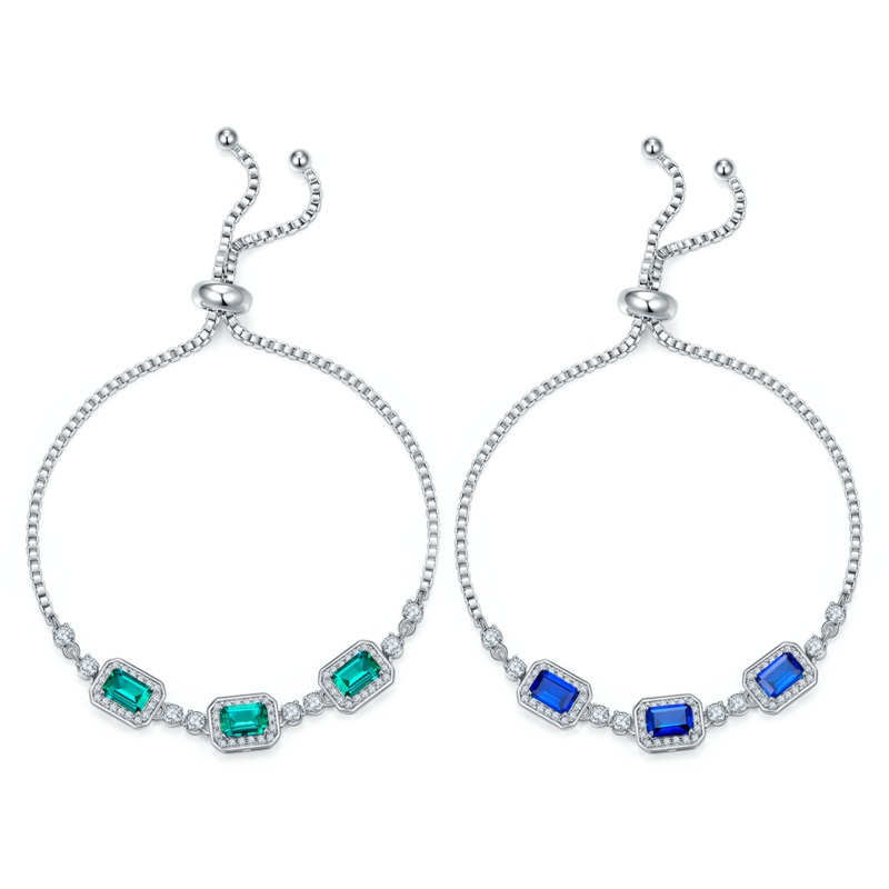 Dont miss the chance to own this elegant bracelet that effortlessly combines style and sustainability. Order your 1.4 Carat three Emerald-Cut Lab Grown gemstones with soleste halo, S925 silver plated 18K platinum Bracelet today!