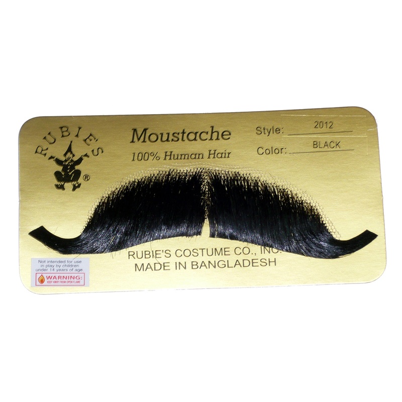 100% Human Hair European Character or Walrus Moustache Black