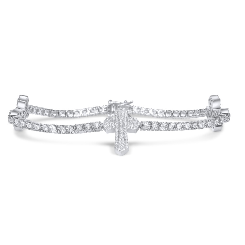 10k White Gold Diamond Cross Bracelet 2.29 ctw