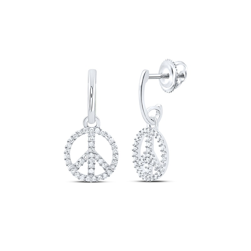 10k White Gold Womens Diamond Peace-sign Dangle Earrings 1/4 Cttw