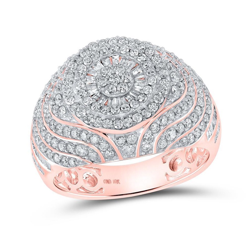 10kt Rose Gold Mens Baguette Diamond Cluster Ring 2 Cttw