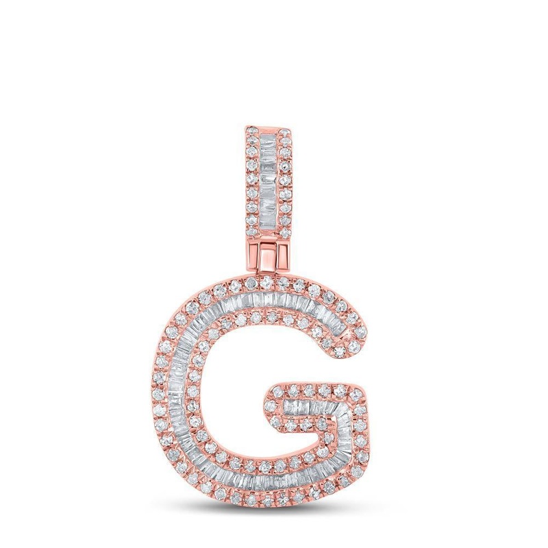 10kt Rose Gold Mens Baguette Diamond G Initial Letter Pendant 1/2 Cttw