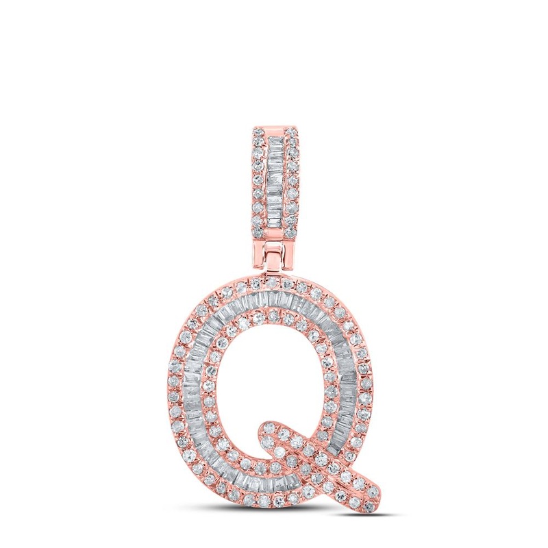 10kt Rose Gold Mens Baguette Diamond Q Initial Letter Pendant 1/2 Cttw