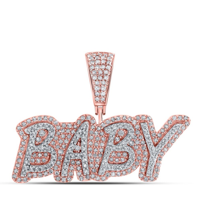 10kt Rose Gold Mens Round Diamond BABY Charm Pendant 7/8 Cttw