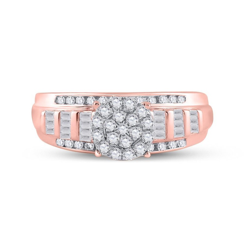 10kt Rose Gold Round Diamond Cluster Bridal Wedding Engagement Ring 1/2 Cttw
