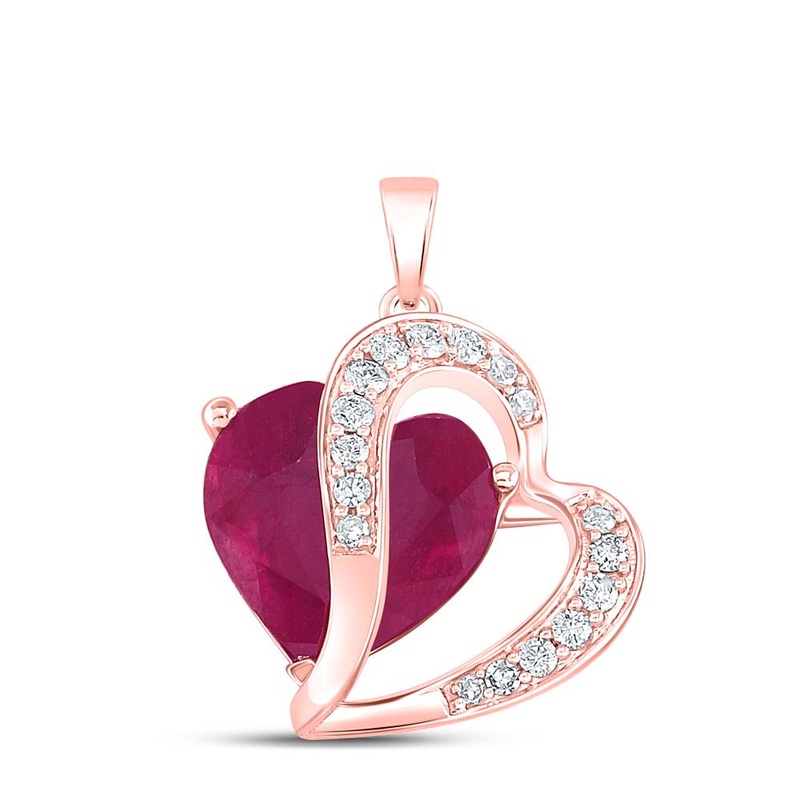 10kt Rose Gold Womens Heart Ruby Diamond Pendant 5 Cttw