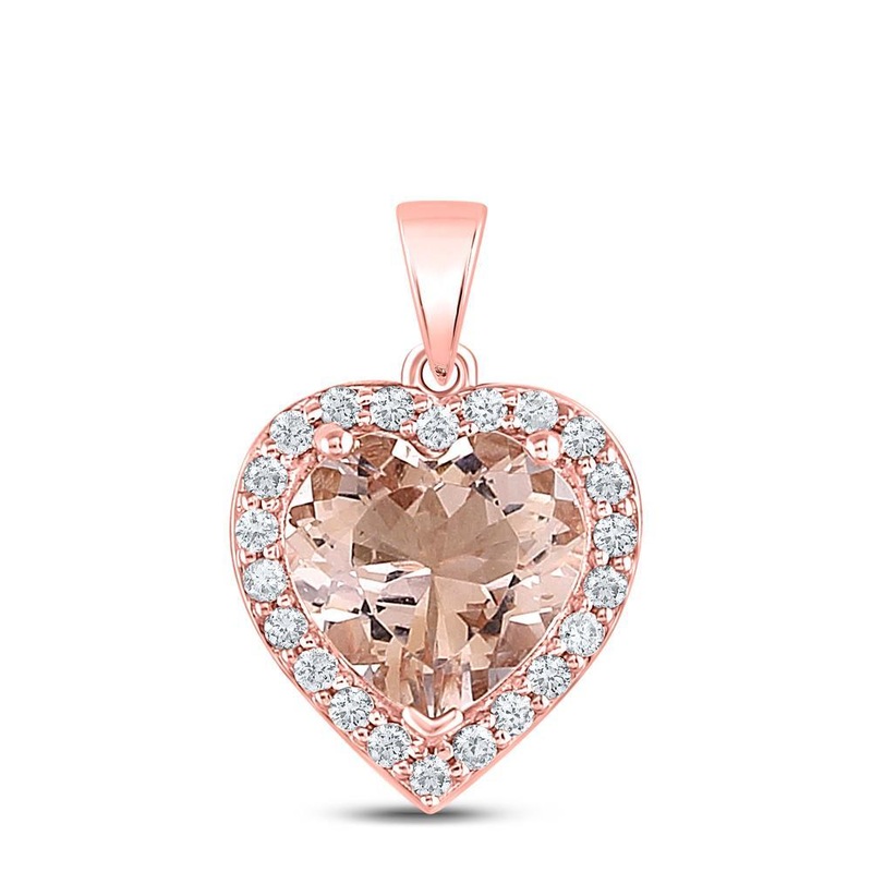 10kt Rose Gold Womens Morganite Heart Diamond Pendant 2-1/4 Cttw