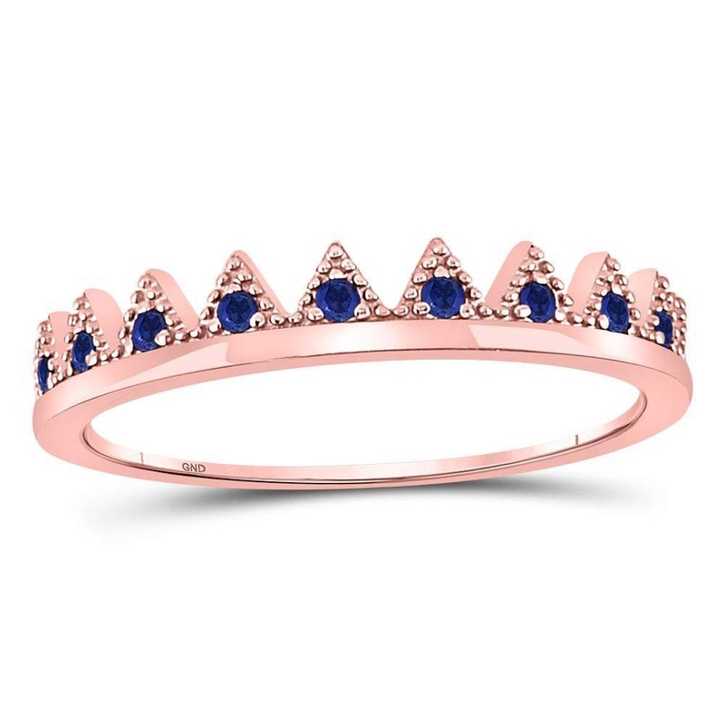 10kt Rose Gold Womens Round Blue Sapphire Chevron Stackable Band Ring 1/10 Cttw