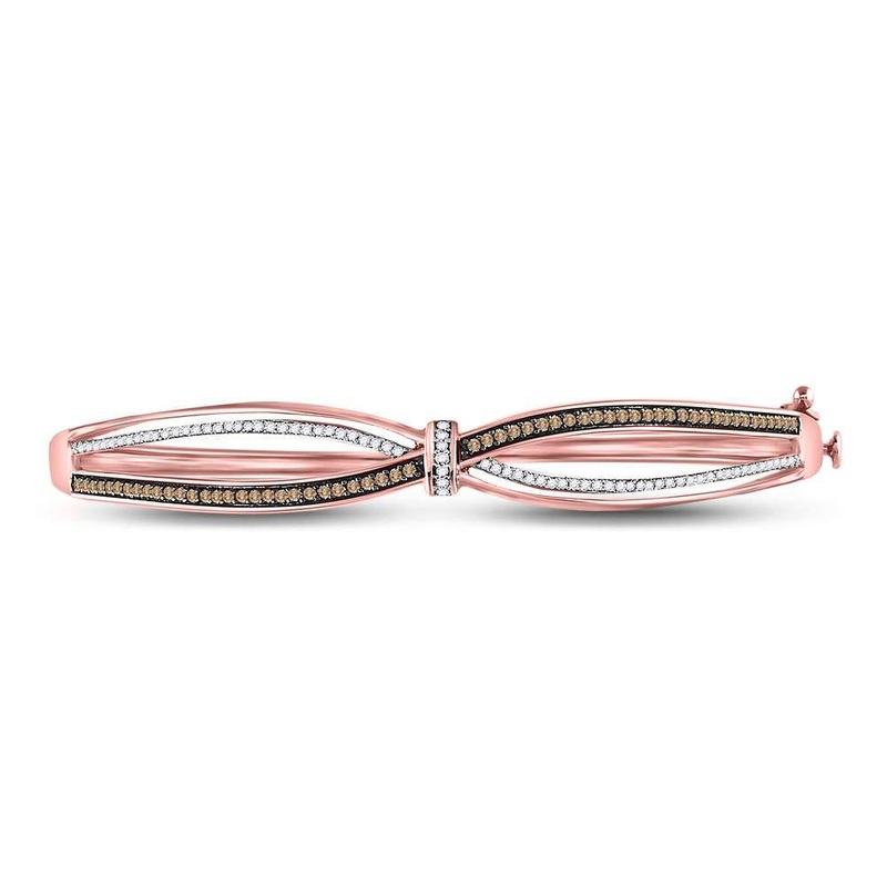 10kt Rose Gold Womens Round Brown Diamond Fashion Bangle Bracelet 1/2 Cttw