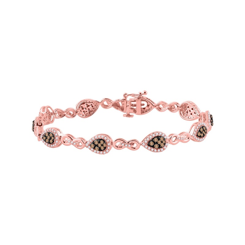 10kt Rose Gold Womens Round Brown Diamond Fashion Bracelet 2 Cttw