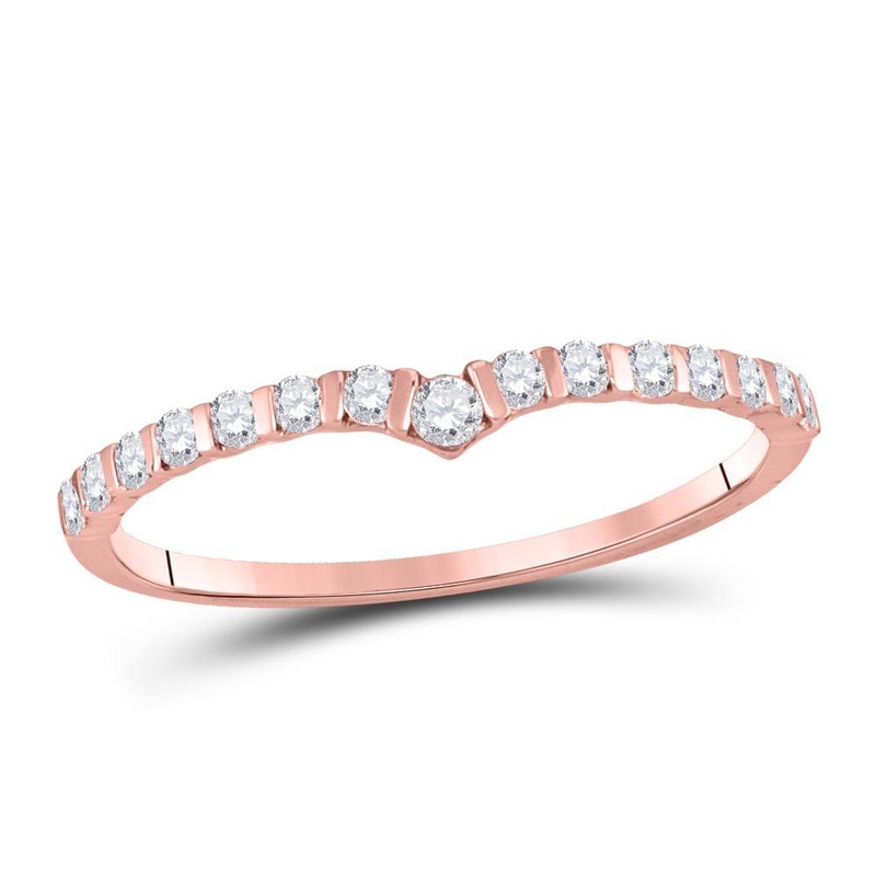 10kt Rose Gold Womens Round Diamond Chevron Stackable Band Ring 1/4 Cttw