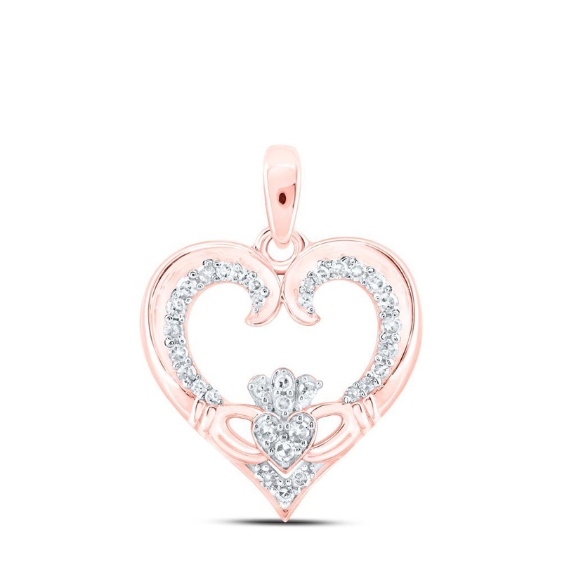10kt Rose Gold Womens Round Diamond Claddagh Heart Pendant 1/6 Cttw