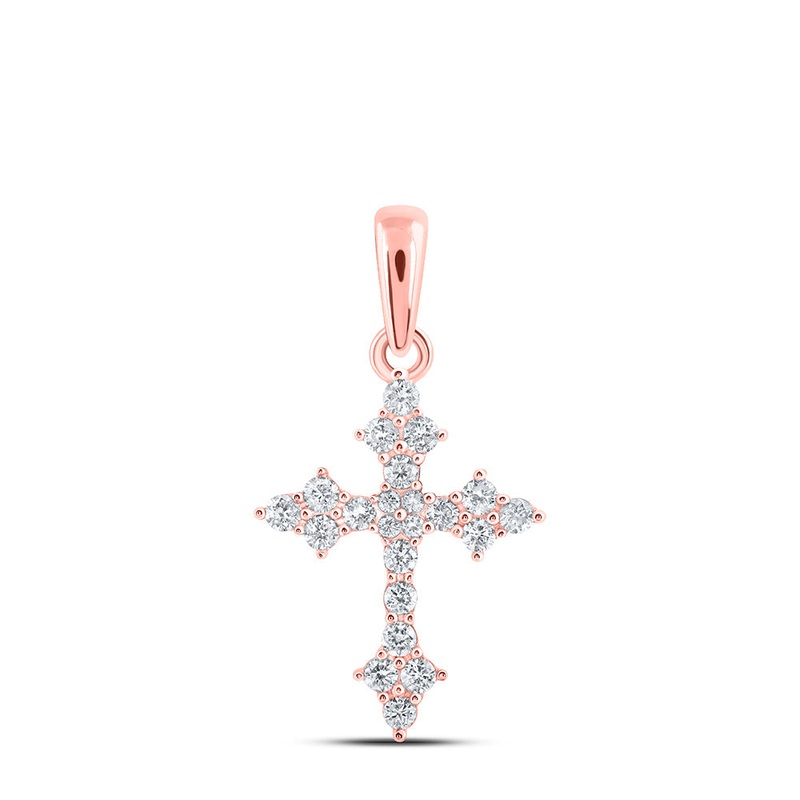 10kt Rose Gold Womens Round Diamond Cross Pendant 1/4 Cttw