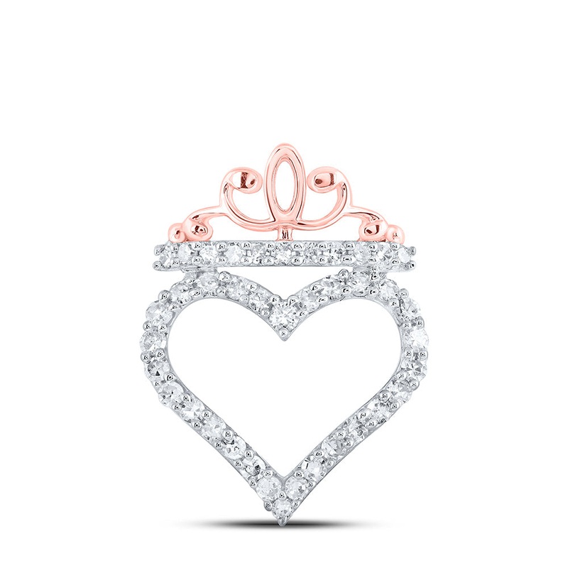 10kt Rose Gold Womens Round Diamond Crown Heart Pendant 1/4 Cttw