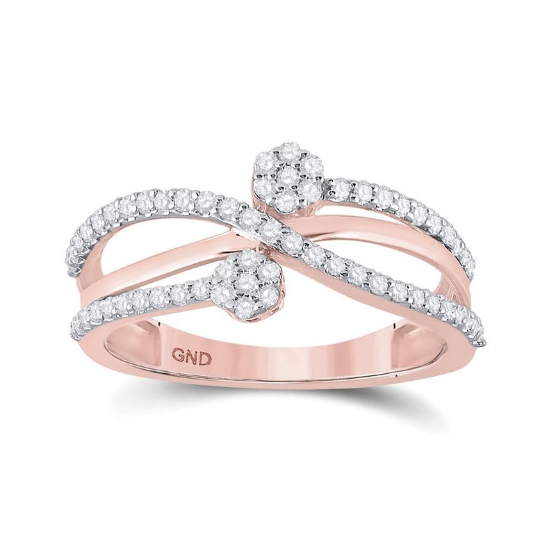 10kt Rose Gold Womens Round Diamond Double Flower Cluster Ring 1/3 Cttw