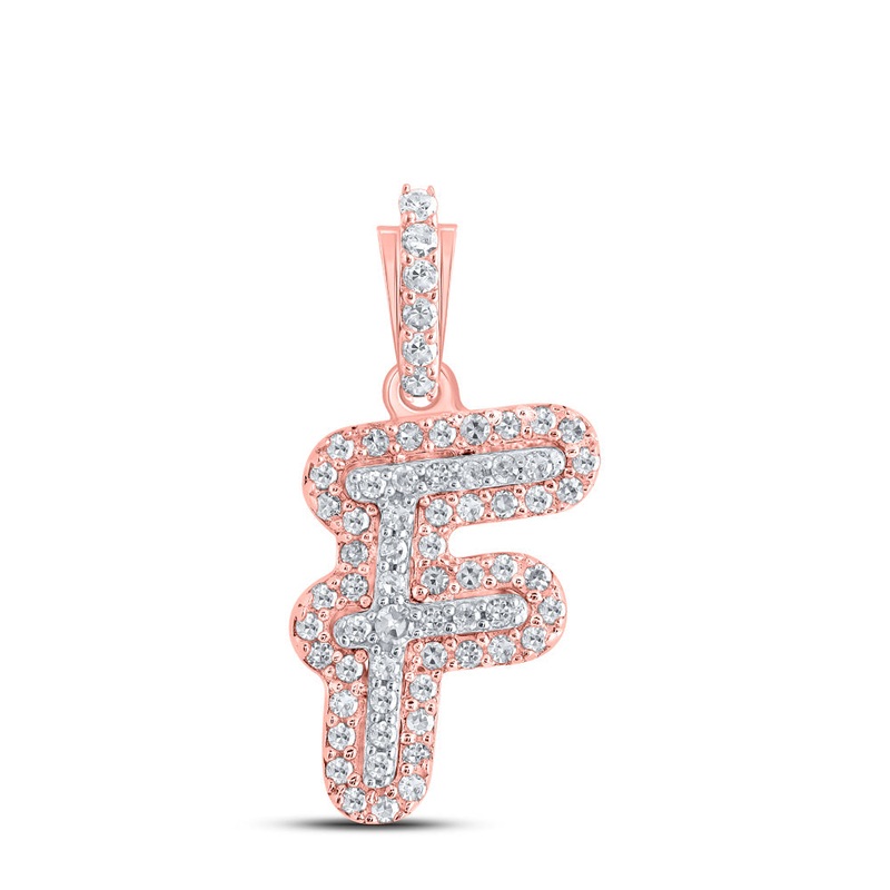 10kt Rose Gold Womens Round Diamond F Initial Letter Pendant 1/6 Cttw