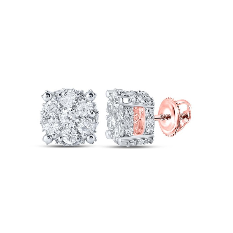 10kt Rose Gold Womens Round Diamond Flower Cluster Earrings 7/8 Cttw