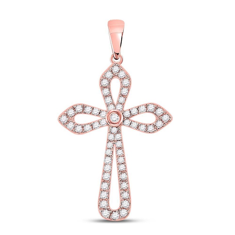 10kt Rose Gold Womens Round Diamond Gothic Cross Pendant 1/3 Cttw