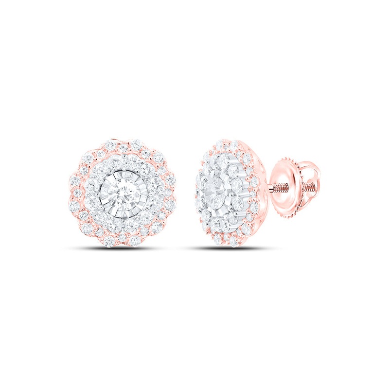 10kt Rose Gold Womens Round Diamond Halo Circle Earrings 1 Cttw
