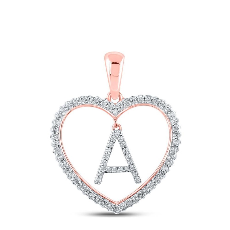 10kt Rose Gold Womens Round Diamond Heart A Letter Pendant 1/4 Cttw