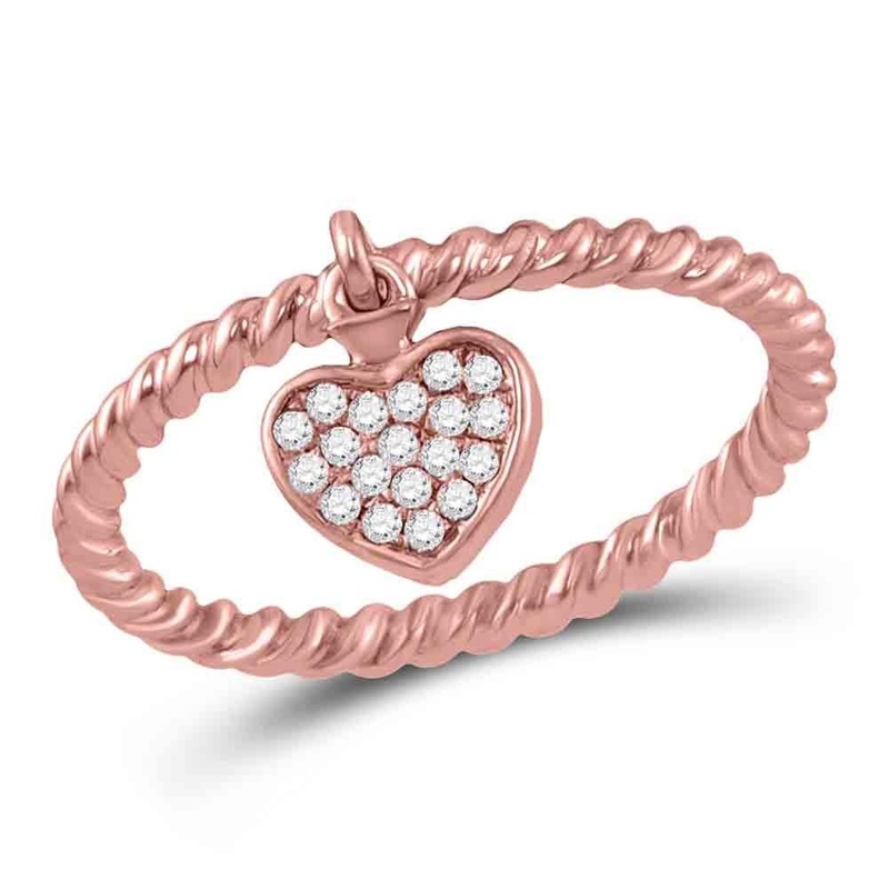10kt Rose Gold Womens Round Diamond Heart Dangle Stackable Band Ring 1/10 Cttw