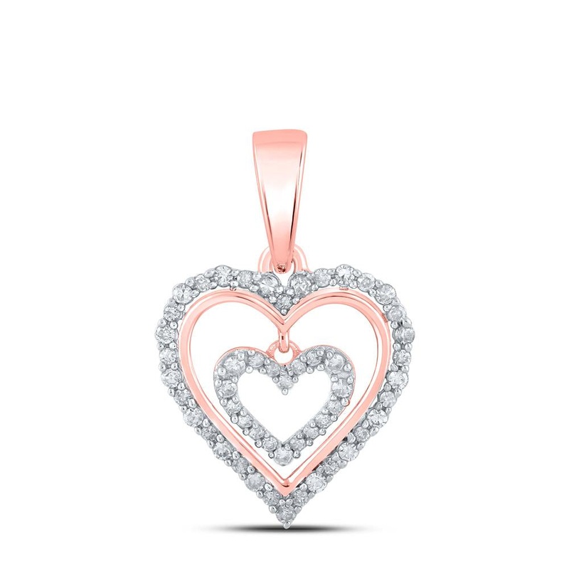 10kt Rose Gold Womens Round Diamond Heart Pendant 1/4 Cttw