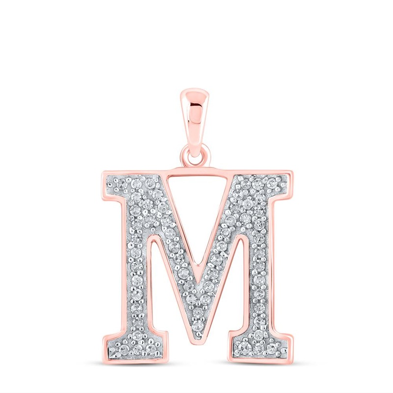 10kt Rose Gold Womens Round Diamond Initial M Letter Pendant 1/10 Cttw