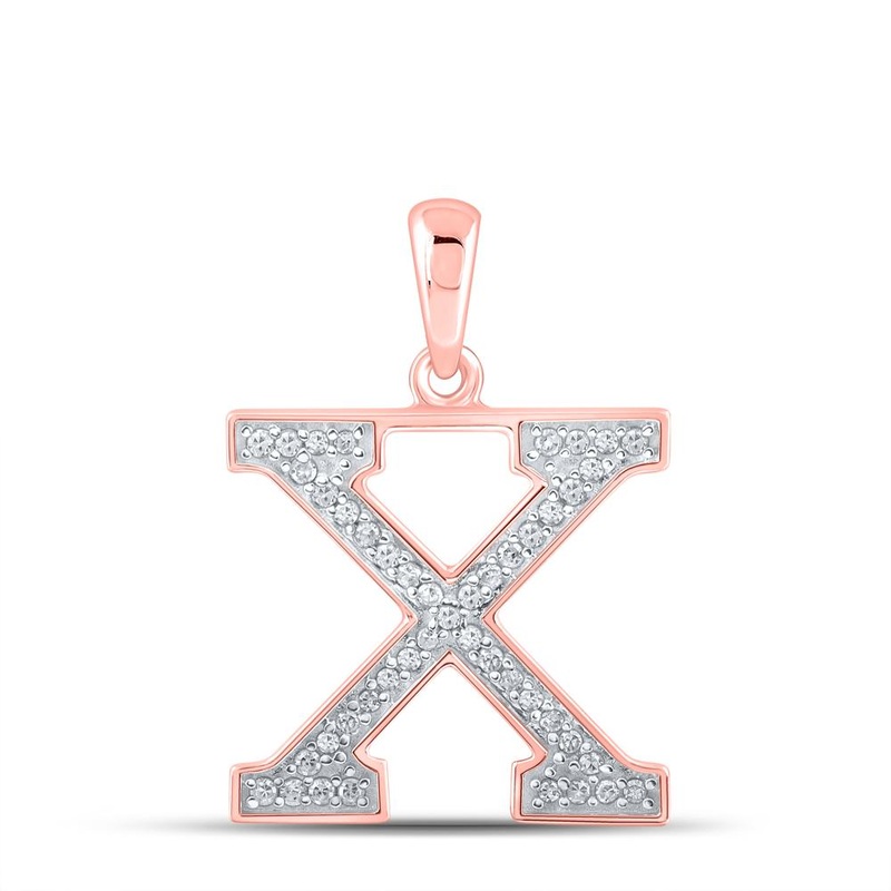 10kt Rose Gold Womens Round Diamond Initial X Letter Pendant 1/10 Cttw