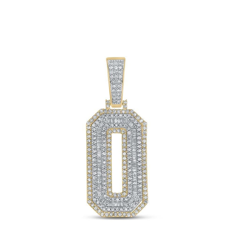 10kt Two-tone Gold Mens Baguette Diamond Number 0 Charm Pendant 1-3/4 Cttw