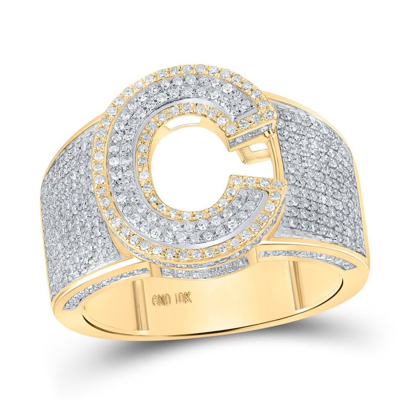 10kt Two-tone Gold Mens Round Diamond C Initial Letter Ring 1 Cttw