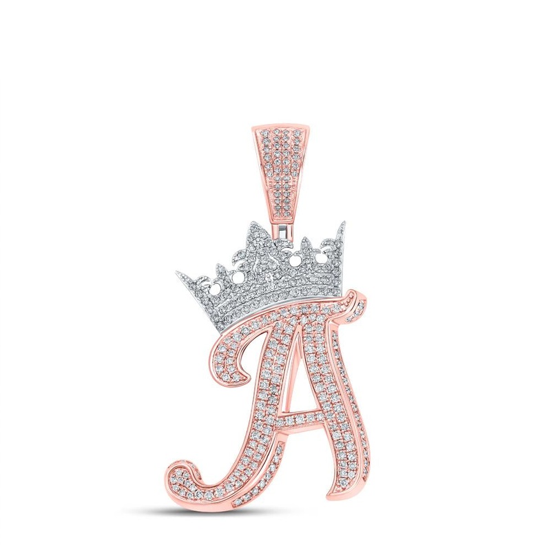 10kt Two-tone Gold Mens Round Diamond Crown A Letter Charm Pendant 1-1/2 Cttw