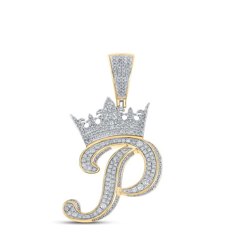 10kt Two-tone Gold Mens Round Diamond Crown P Letter Charm Pendant 1-1/2 Cttw