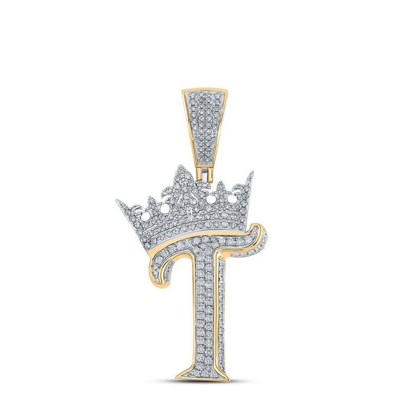 10kt Two-tone Gold Mens Round Diamond Crown T Letter Charm Pendant 1 Cttw