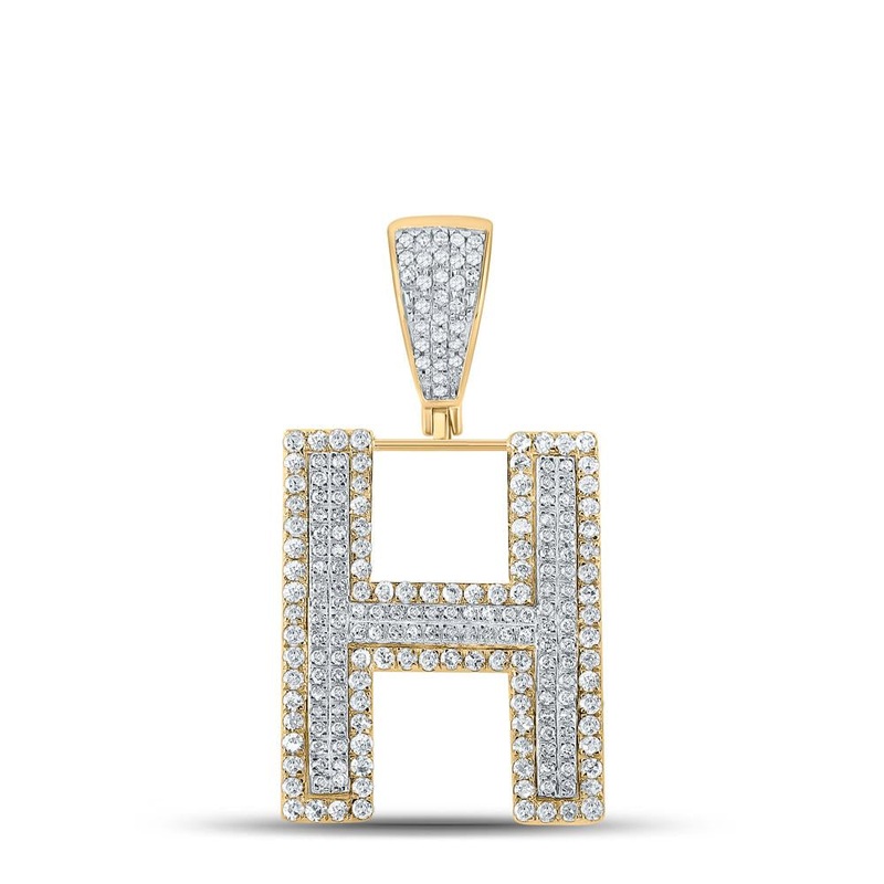 10kt Two-tone Gold Mens Round Diamond Initial H Letter Charm Pendant 7/8 Cttw