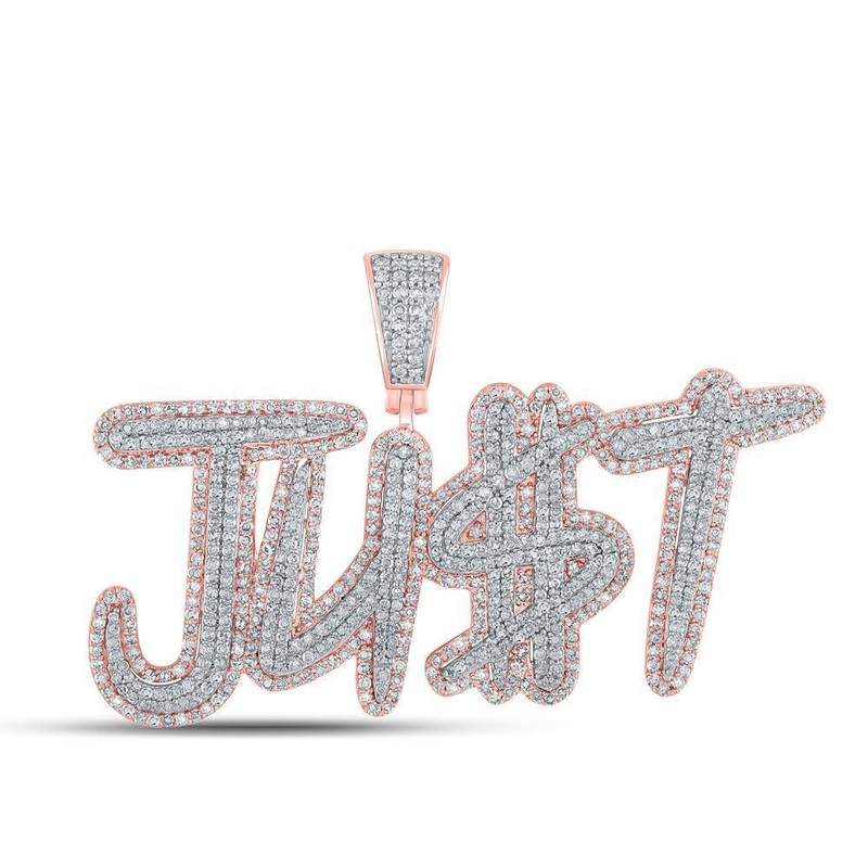 10kt Two-tone Gold Mens Round Diamond JU$T Phrase Charm Pendant 2-5/8 Cttw