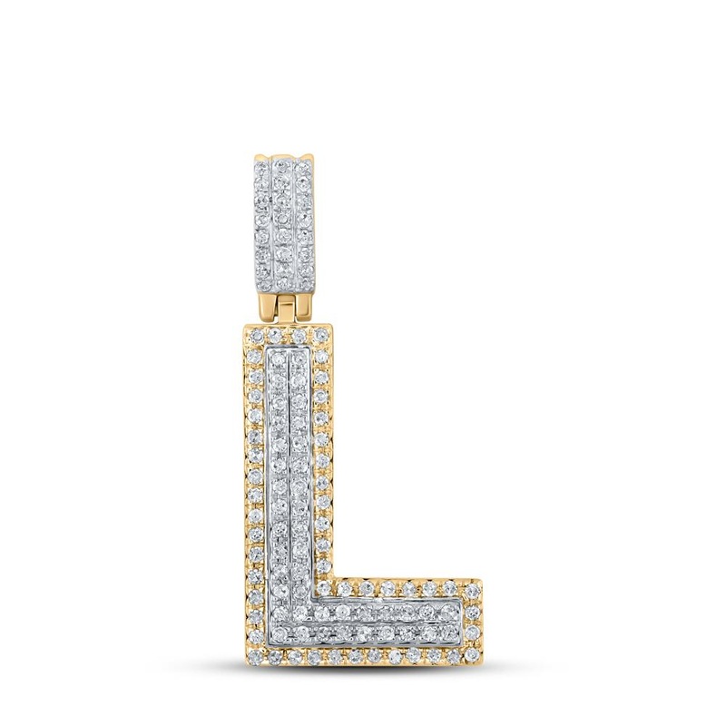 10kt Two-tone Gold Mens Round Diamond L Initial Letter Pendant 1/3 Cttw