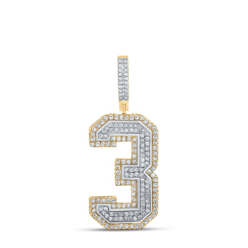 10kt Two-tone Gold Mens Round Diamond Number Three Charm Pendant 1 Cttw