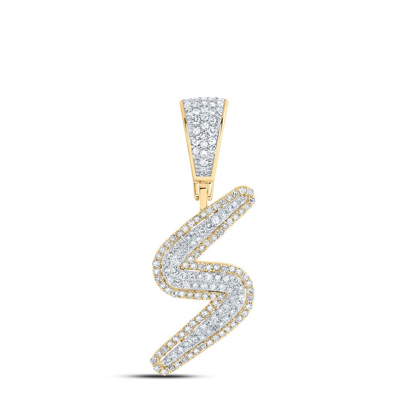 10kt Two-tone Gold Mens Round Diamond S Initial Letter Charm Pendant 1/2 Cttw
