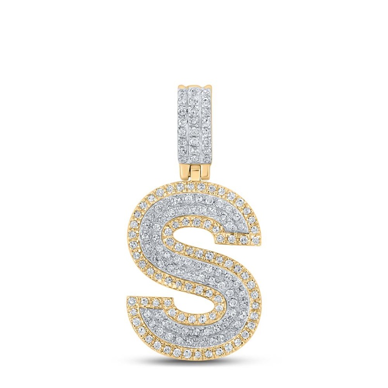 10kt Two-tone Gold Mens Round Diamond S Initial Letter Pendant 1/2 Cttw