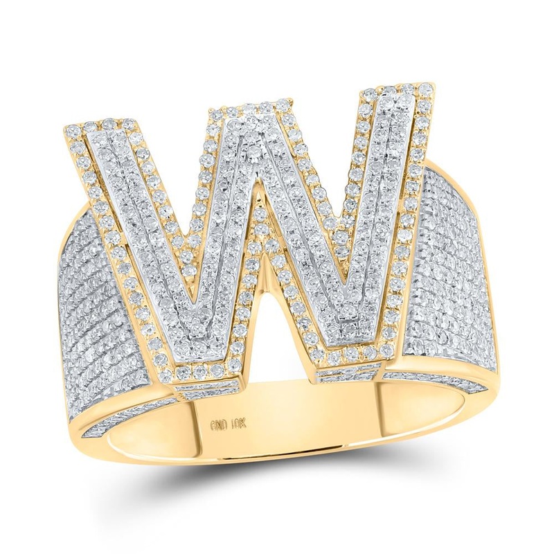 10kt Two-tone Gold Mens Round Diamond W Initial Letter Ring 1-1/3 Cttw