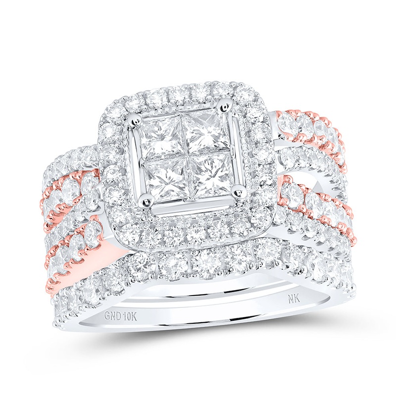 10kt Two-tone Gold Princess Diamond Bridal Wedding Ring Band Set 2-3/4 Cttw