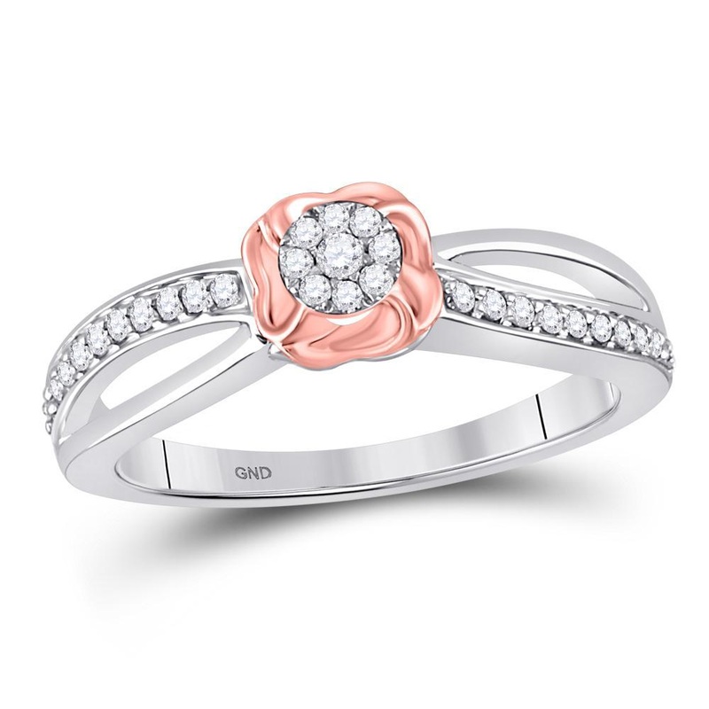 10kt Two-tone Gold Womens Round Diamond Flower Cluster Ring 1/6 Cttw
