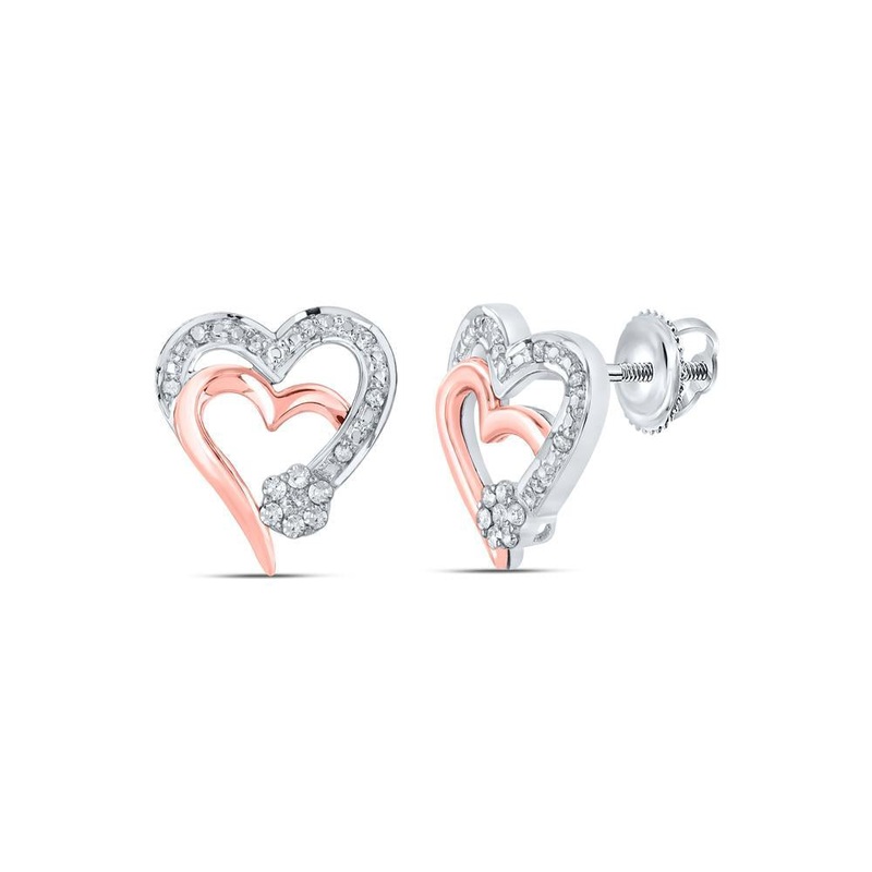 10kt Two-tone Gold Womens Round Diamond Heart Earrings 1/6 Cttw